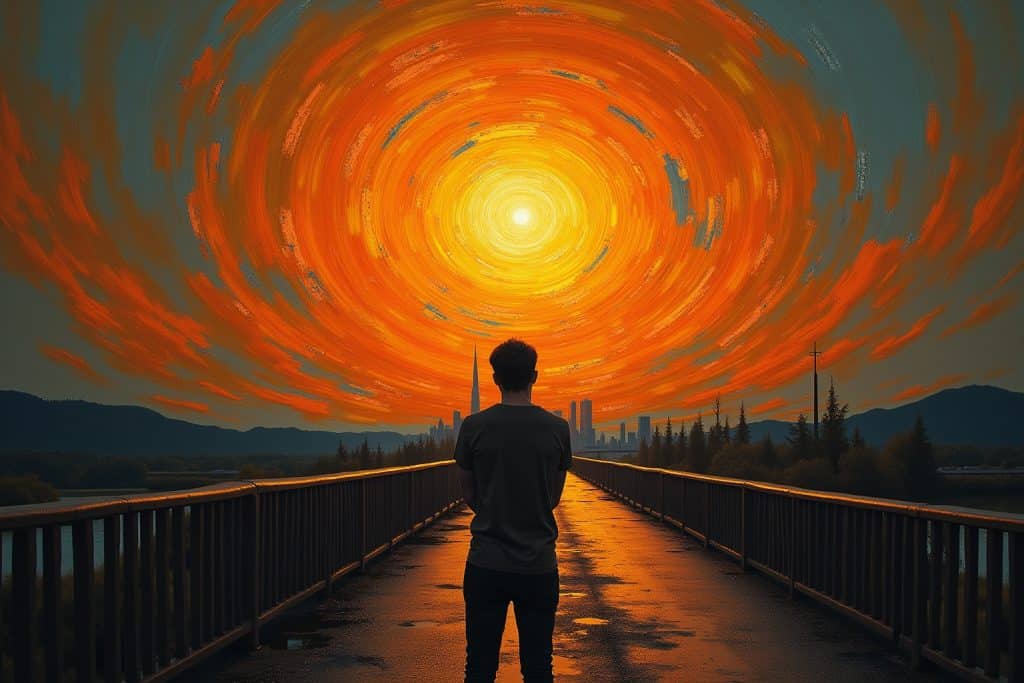 Um Der Schrei wirklich zu verstehen, musst du dich in die Welt von Edvard Munch hineinversetzen. Stell dir vor: Es ist ein Abend im Jahr 1893, du wanderst mit Freunden entlang eines Fjords in Norwegen. Die Sonne geht unter, und plötzlich – wie aus dem Nichts – färbt sich der Himmel in einem unnatürlichen Rot. Es ist, als ob die Natur selbst schreit, als ob die Farben in ihrer Intensität unerträglich werden. Munch beschreibt dieses Erlebnis als einen Moment tiefster Angst und Verzweiflung, einen Schrei, der durch die Natur hallt und in sein Innerstes eindringt.